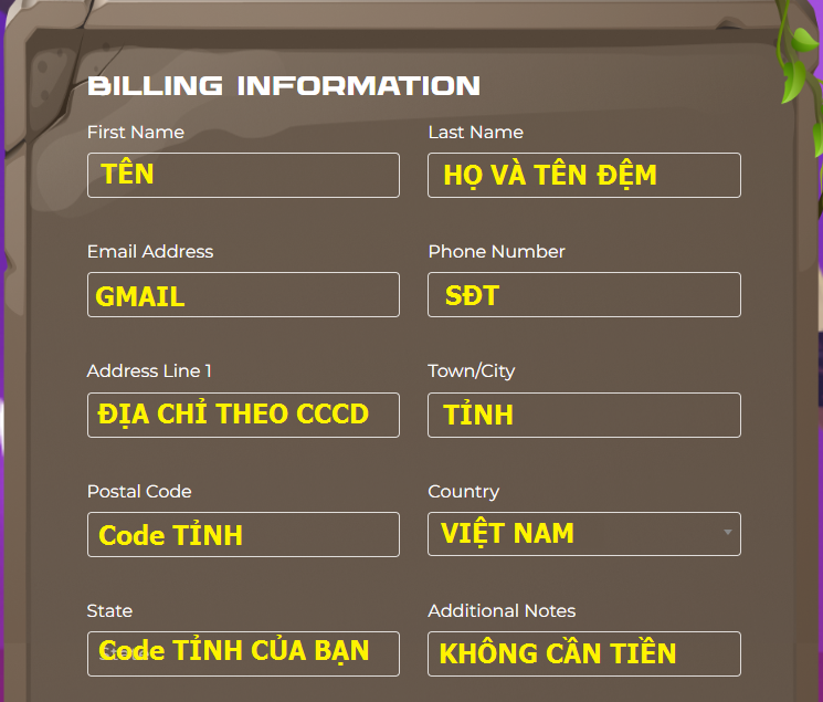 Để đăng ký tài khoản quỹ TFT bằng thẻ Visa bạn điền thông tin thẻ như trong ảnh